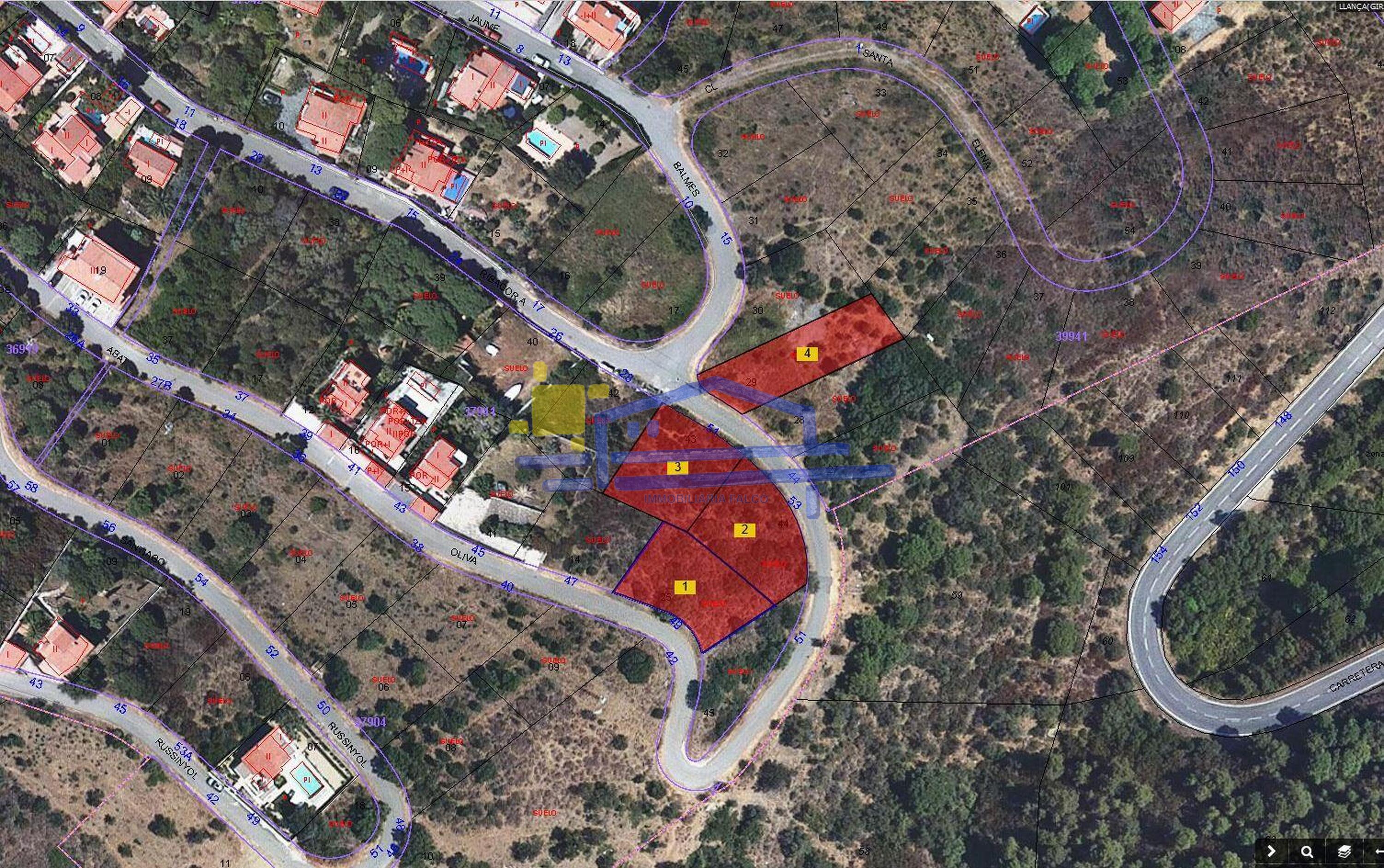 Parcel·les de 568,55, 564,10, 570.70 i 596,15. Es pot construir una casa de dues plantes amb un total del 30% de la superfície per planta. Parcel·la 1 amb vista panoràmica al mar i a tota la badia de Llançà, parcel·les 2 i 3 amb vistes al mar i parcel·la 4 amb molt poca vista al mar. Les parcel·les 1 2 i 3 tenen un preu de 190.000.-€ amb despeses d'urbanització incloses. La parcel·la 4 té un preu de 170.000.-€.